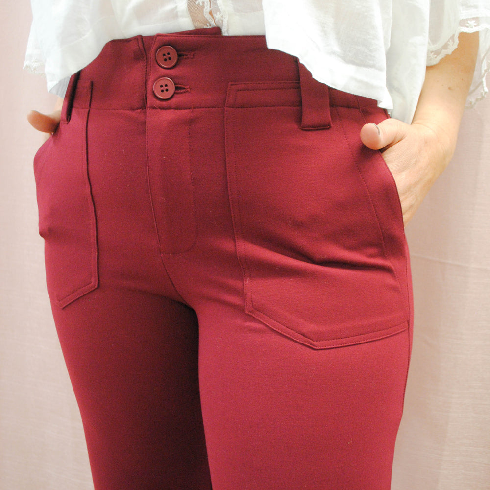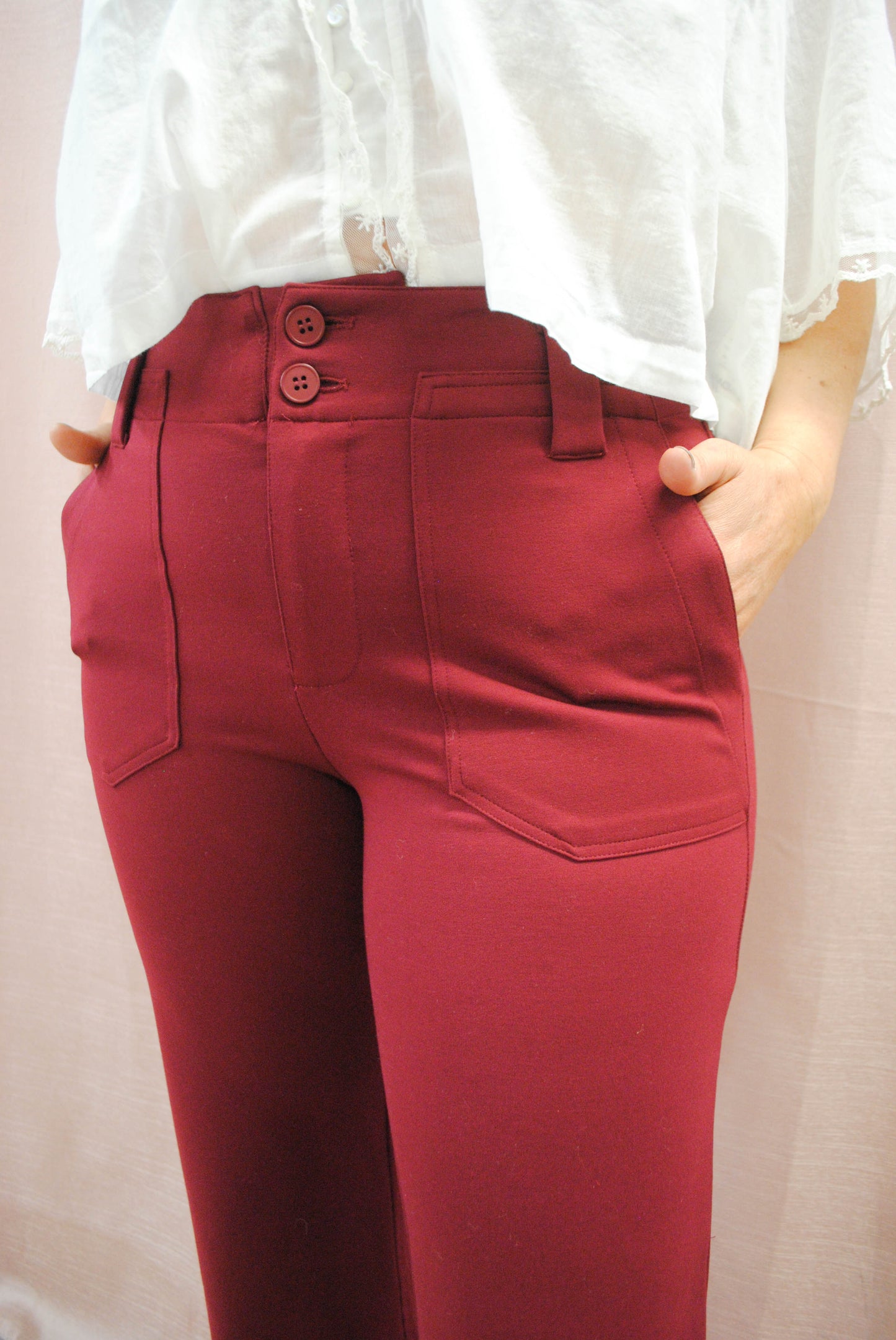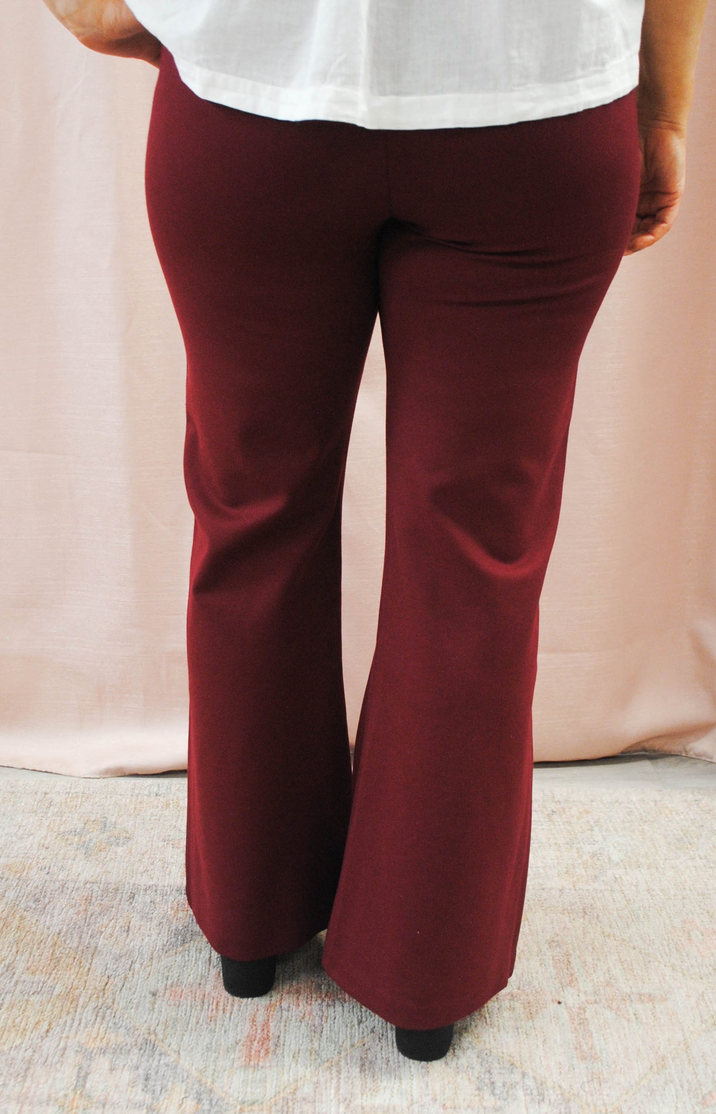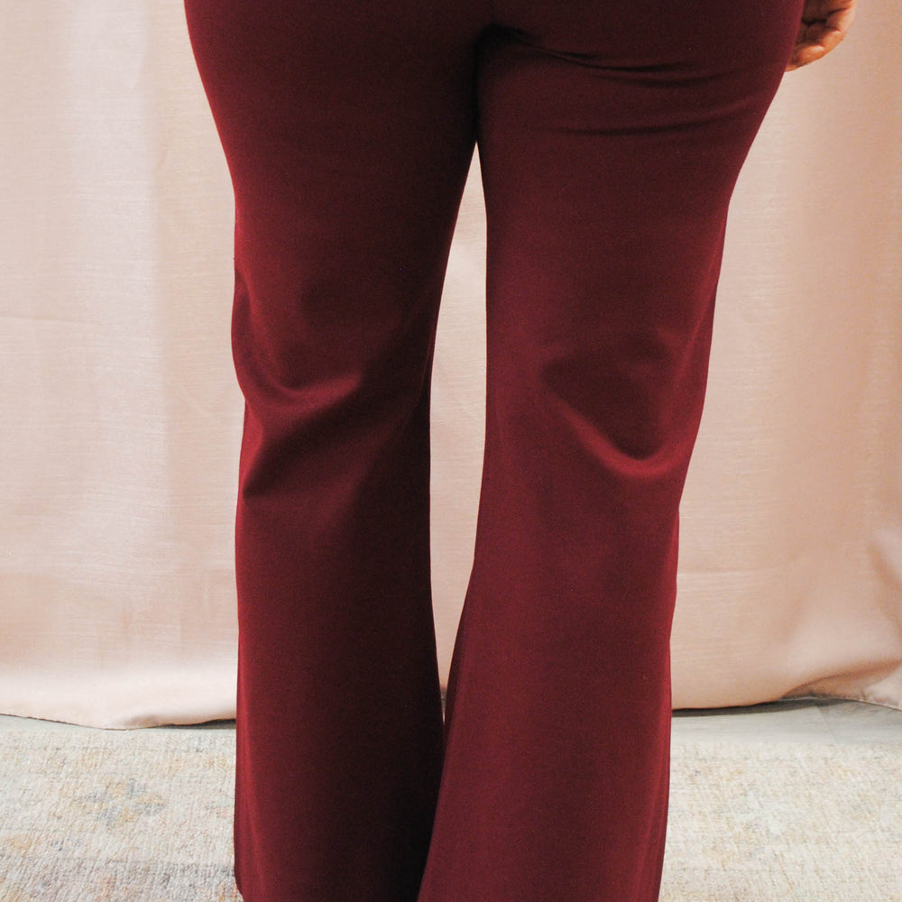 Elevate your wardrobe with our Burgundy Delight Flares! Made with ponte fabric for ultimate comfort, these flare pants feature two front pockets for convenience. Perfect for any occasion, these pants will add a touch of sophistication and style to any outfit. Upgrade your look with Burgundy Delight Flares today!