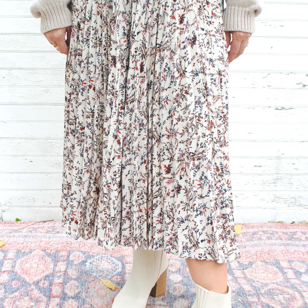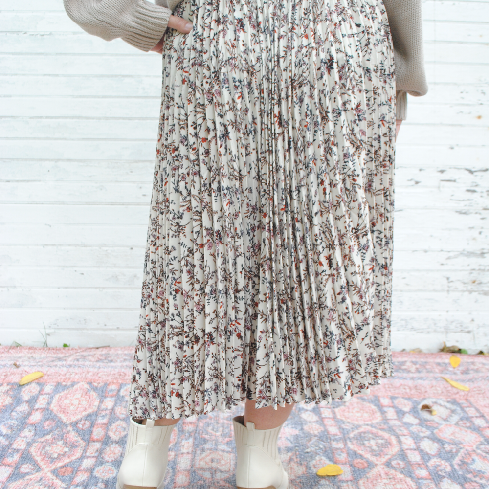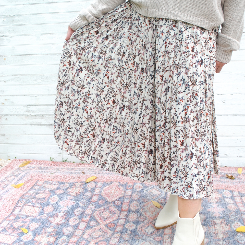 Introducing the Crisp Season Broomstick Skirt - the perfect combination of style and comfort! Featuring a pleated design with a stunning floral print, this skirt is sure to turn heads. And with its elastic waist, it's the perfect fit for any body type. Get ready to twirl in style!