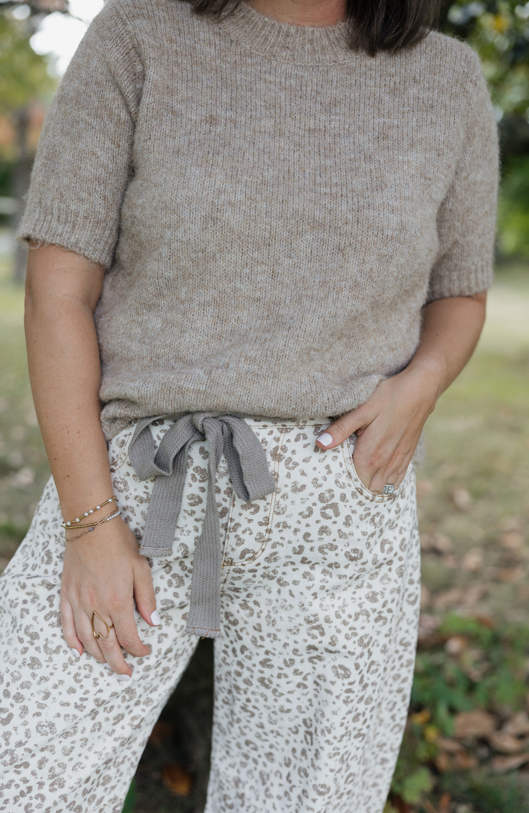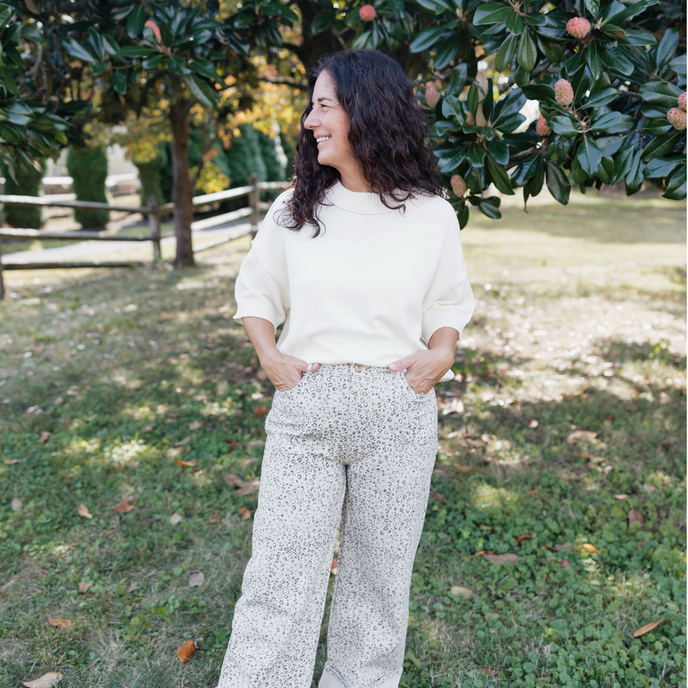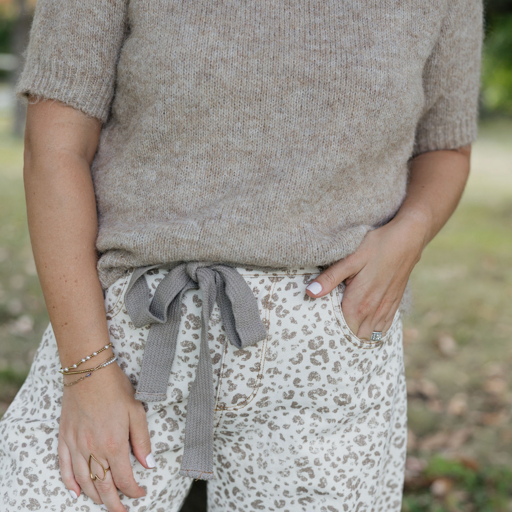 Step into the wild side with the Savanna Tie-Waist Leopard Pant! These playful leopard print denim pants come with a fun waist tie detail that lets you show off your style and flair. Whether you're prowling through the city streets or lounging with friends, these pants add a splash of fierce fashion and comfy vibes to any outfit. Perfect for those who love to mix bold prints with a touch of sass, the Savanna Pant is your new go-to for turning heads and feeling fabulous all day long. Unleash your inner fashionista and let the fun begin!