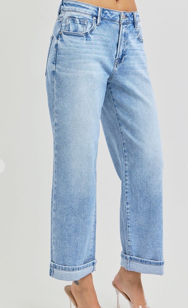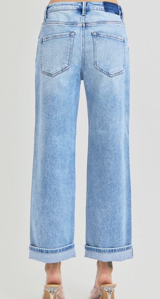 Tammi High Rise Ankle Cuff Jean Light Wash: Perfect for those days when you want to look effortlessly cool. These jeans have a high rise, with a playful ankle cuff and a flattering wide leg.
