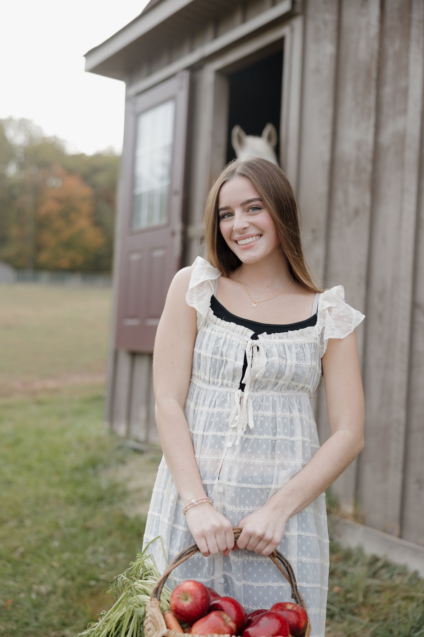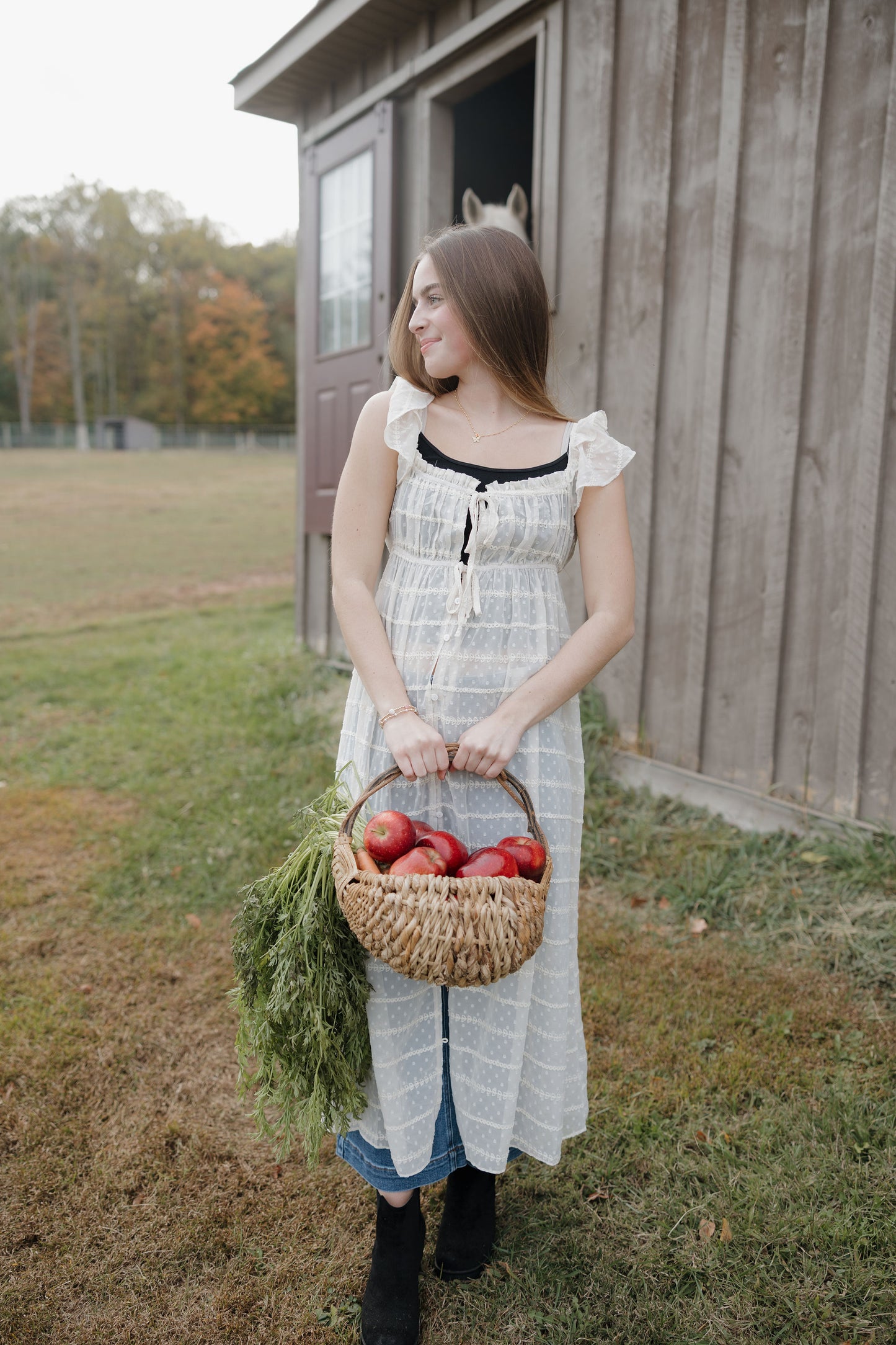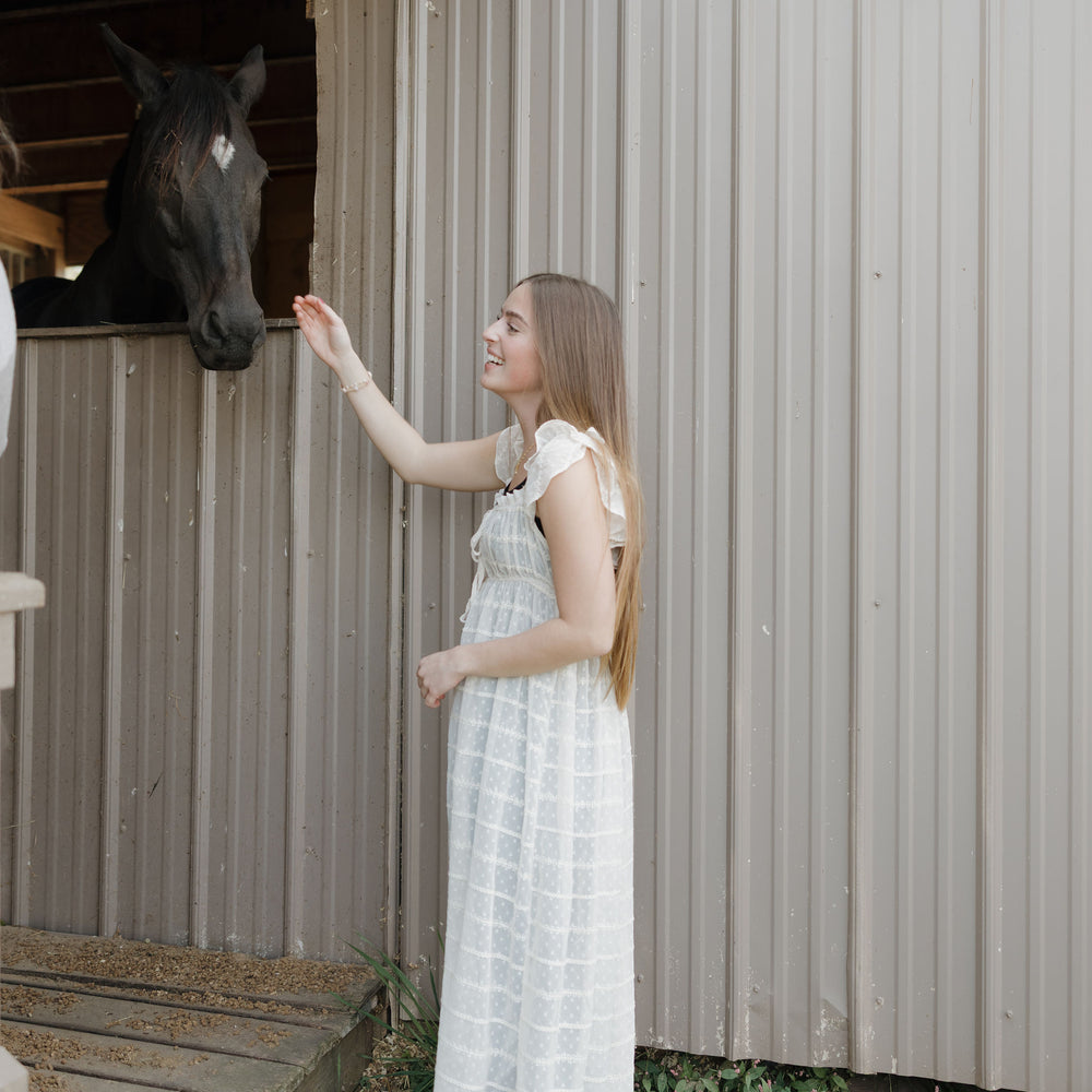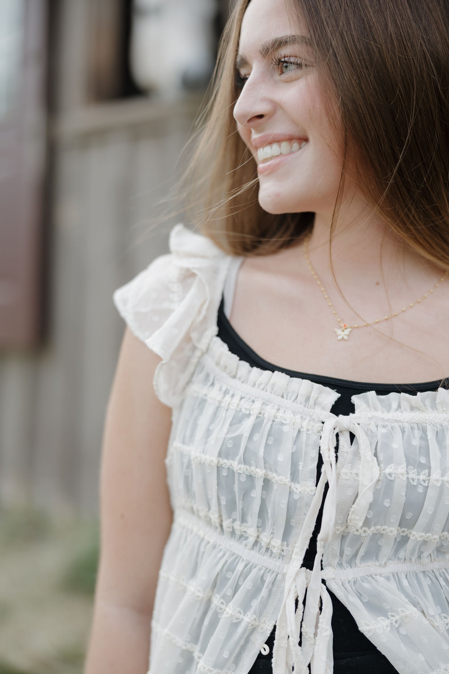 The Dust up dress in cream is a sheer chiffon textured dress that has ruffle sleeves, tie at the waist and buttons. She can be worn open over a tank and shorts this piece is like nothing you have in your closet! Its as unique as you are!