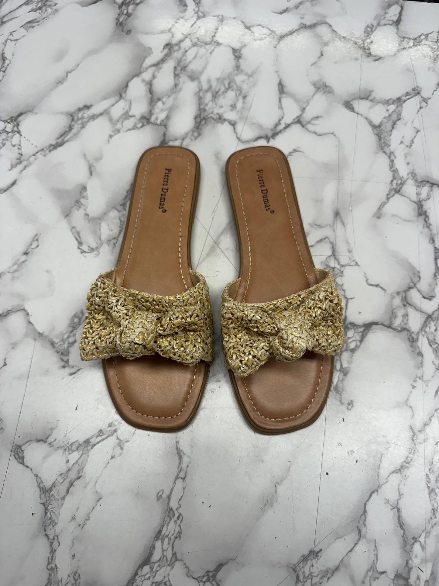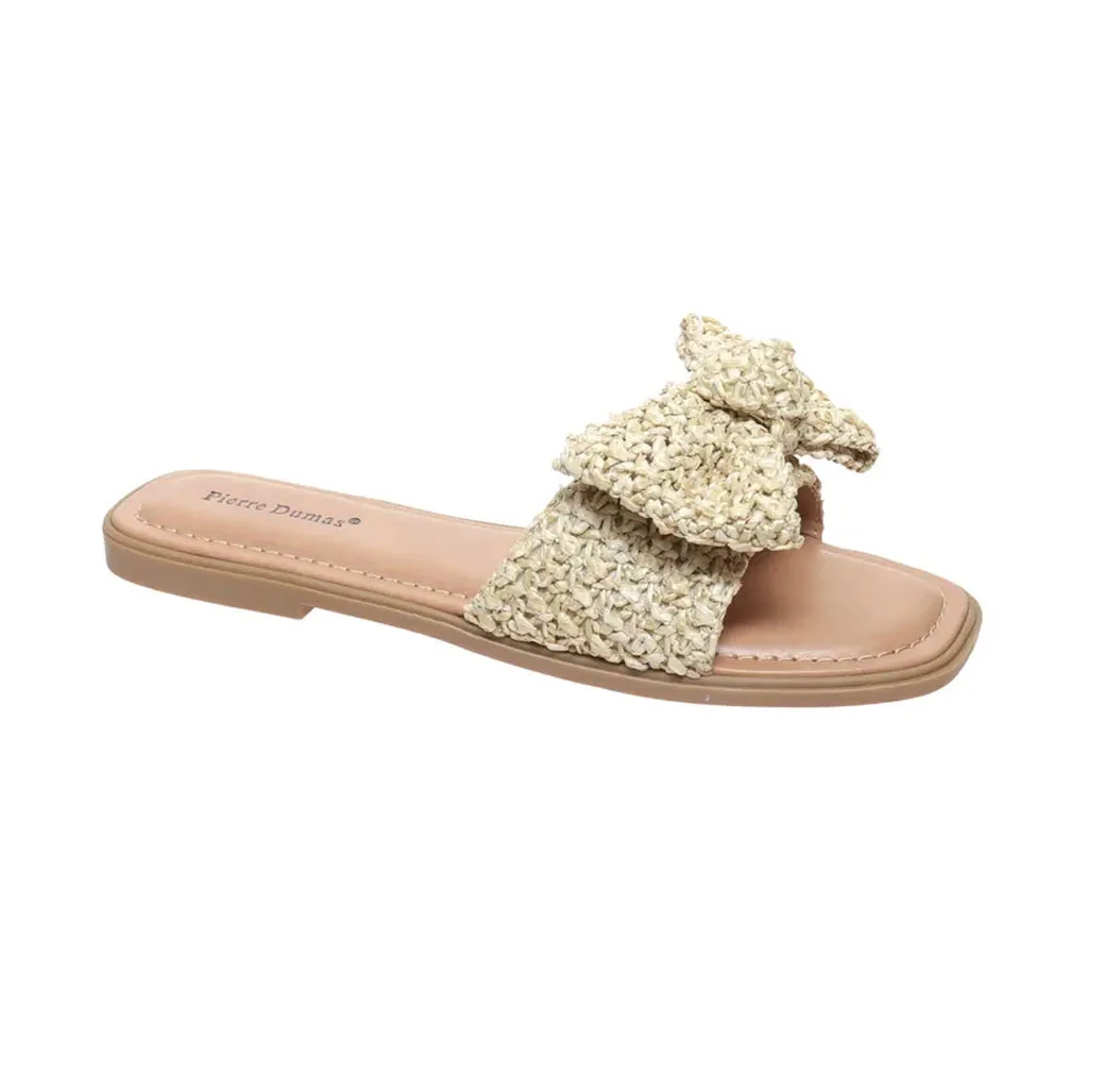 Step into effortless style with the Candace Woven Bow Slides. These charming slides feature a textured basket weave design paired with a sweet bow detail that adds just the right touch of personality. Crafted from natural materials in a versatile neutral tone, they're the perfect go-to for casual days when comfort meets cute. Slip them on and feel the difference quality makes.