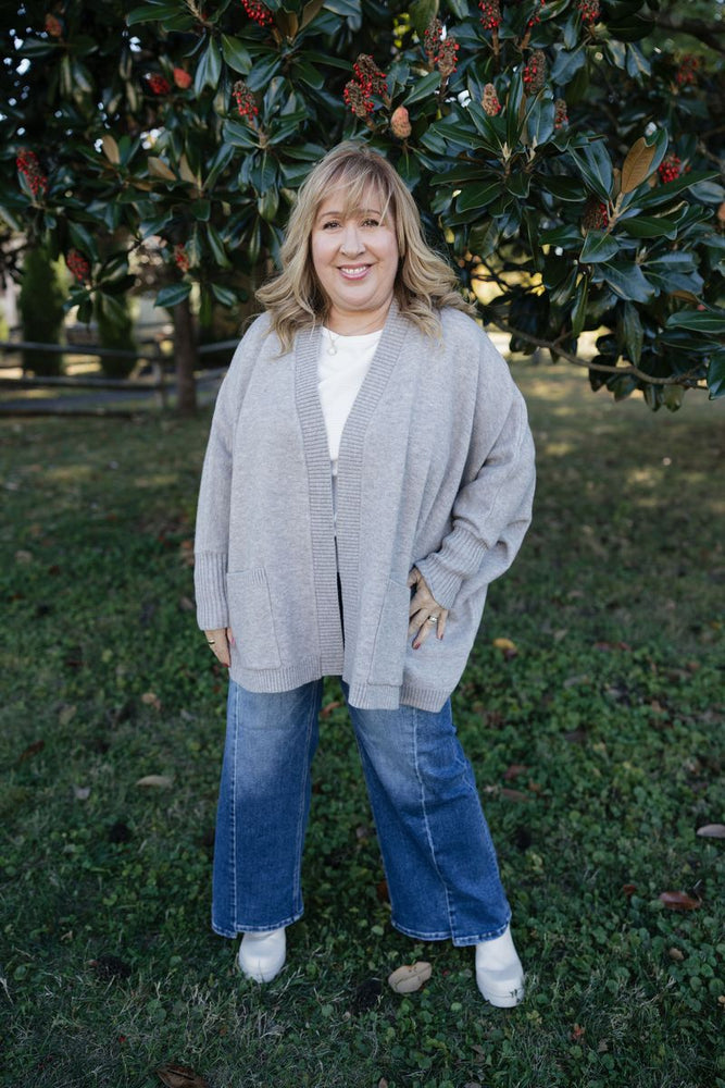 This cozy sweater features a relaxed, boxy fit with a classic crew neck, all wrapped up in a charming heathered grey shade. Perfect for laid-back days with a touch of effortless style!