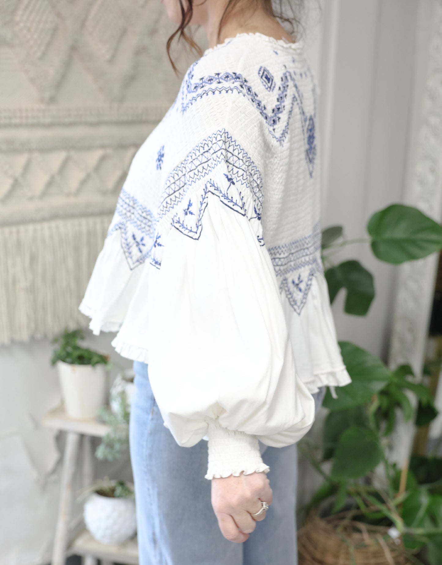 Breezy, billowy, and beautiful, this long-sleeve top features lightweight cotton fabrication, a flowy peplum design, and exaggerated balloon sleeves for an effortless silhouette.