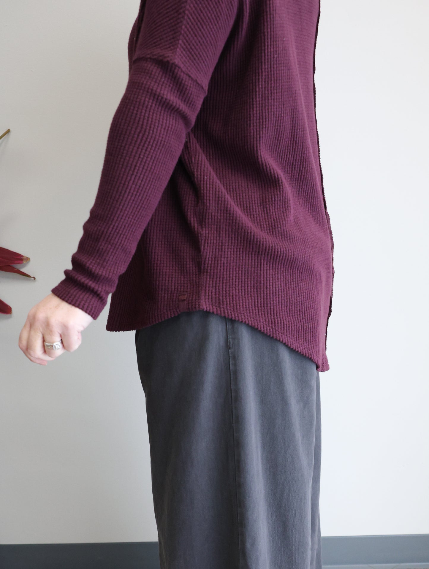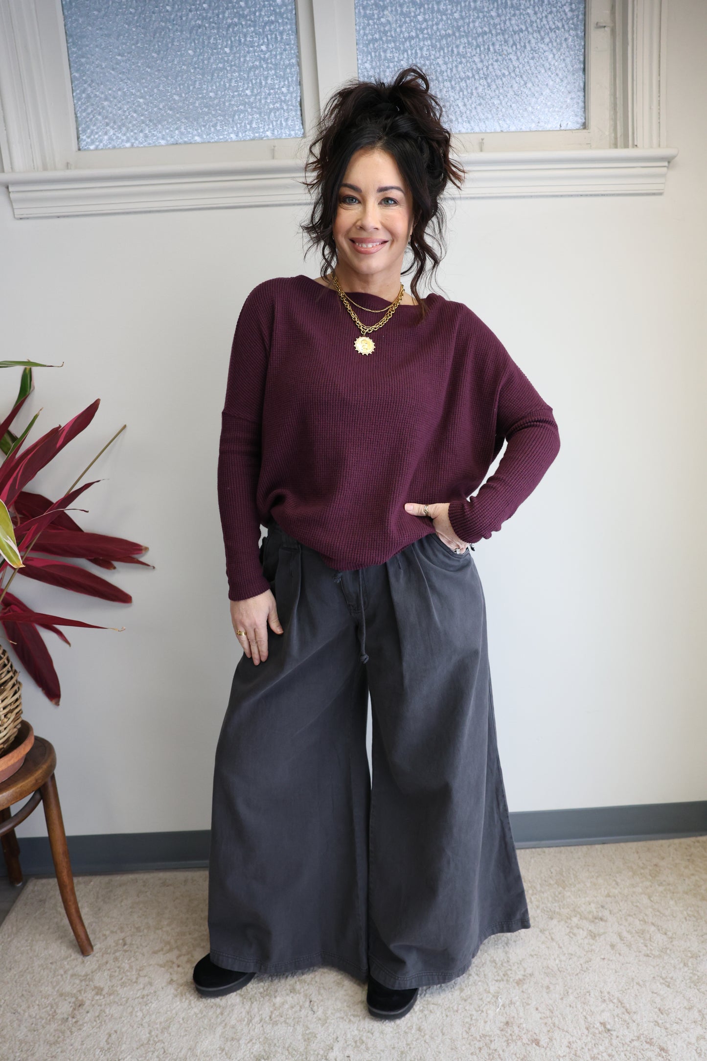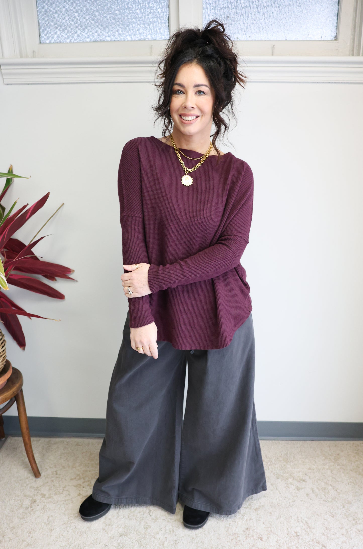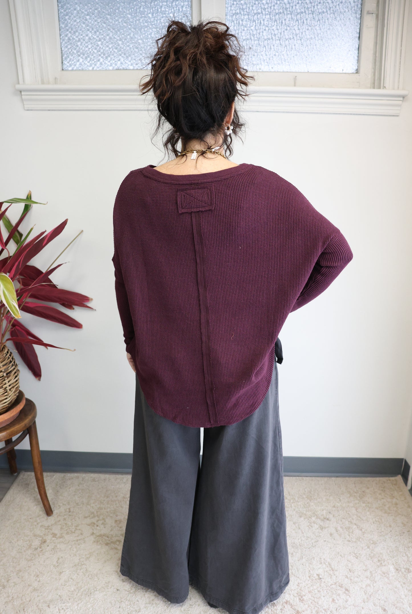 This oversized thermal from We The Free offers an effortlessly relaxed silhouette with its generous fit. Featuring a boat neckline, waffle knit construction, a boxy shape, and dolman long sleeves, it is an essential piece for sophisticated, comfortable layering.