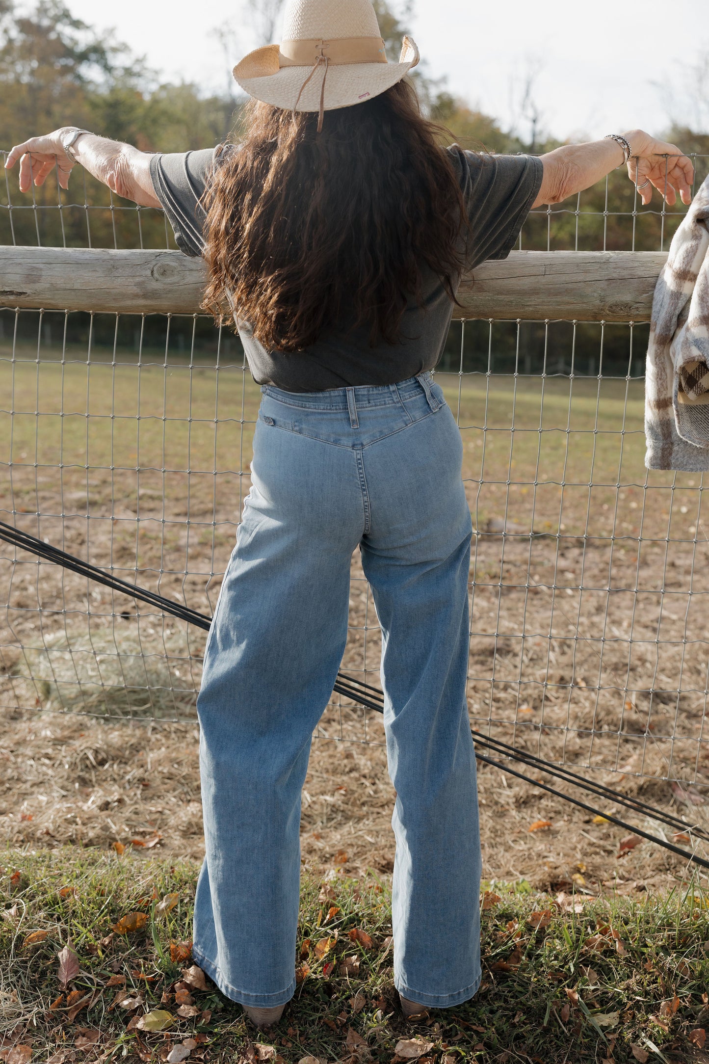 Give your denim collection a retro boost with these wide-leg jeans from the We The Free collection. They feature a high-rise fit, zip fly, and button closure, plus seamed paneling and an inverted yoke seam for a flattering shape in soft stretch denim. Rock them boldly with western boots or keep it casual with ballet flats—this pair offers endless styling fun.