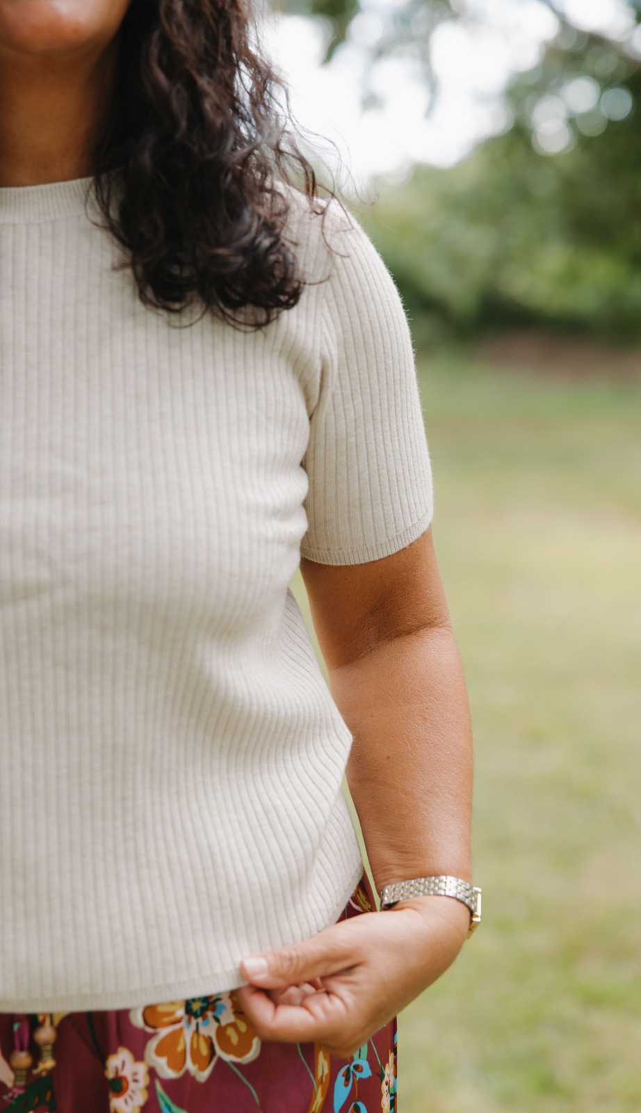 Cozy up in the Cara Sweater, a ribbed short sleeve sweater with a chic mock neck. Crafted from soft, breathable fabric, it keeps you comfy and cool all day long. Perfect for layering or wearing solo, this playful piece adds a touch of effortless style to any outfit.