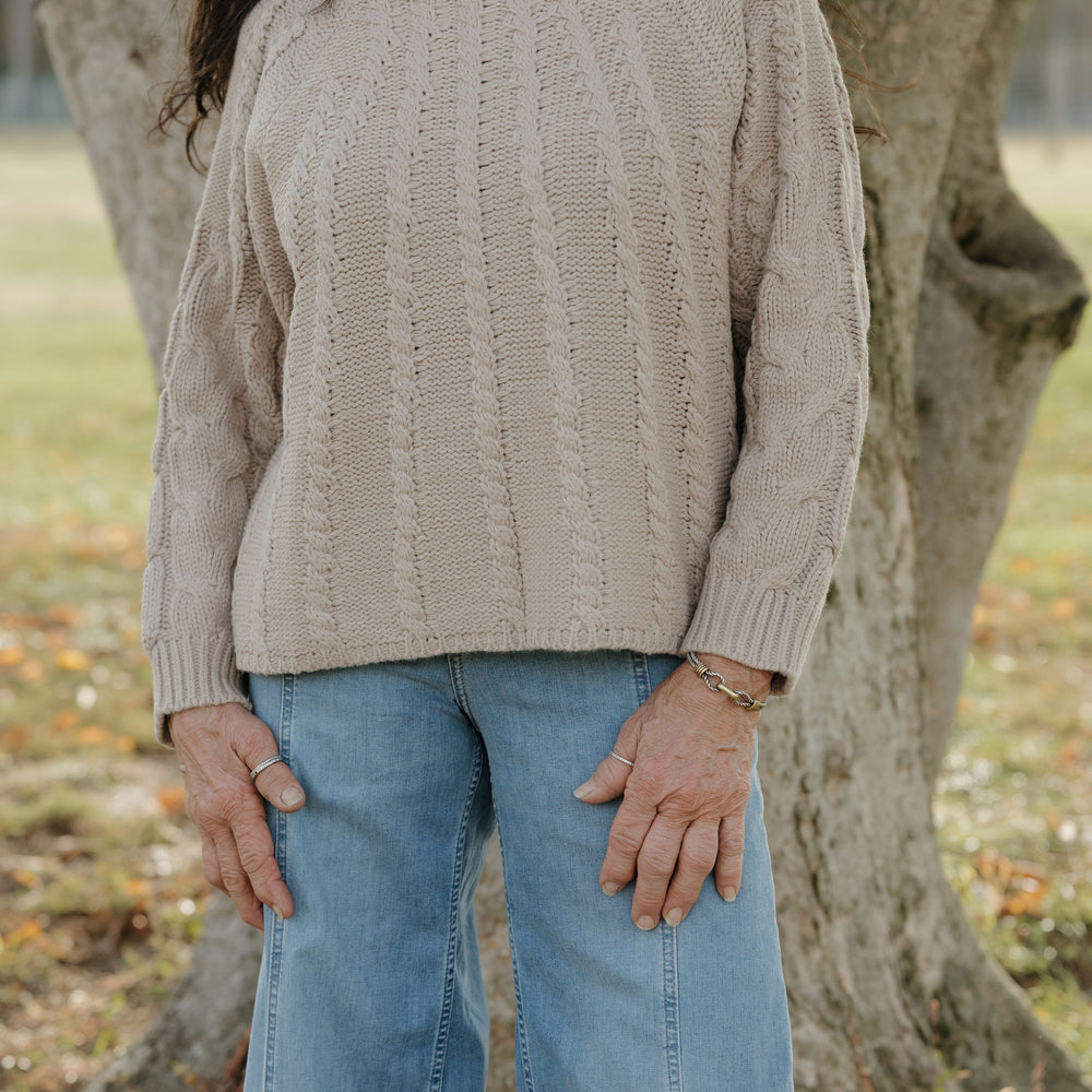 Elevated knitwear, this cropped cable knit mock neck sweater brings refined texture with a relaxed yet polished silhouette. Designed for versatile styling, it pairs effortlessly with tailored or casual bottoms, offering cozy sophistication that appeals to buyers seeking timeless updates with wearable charm.