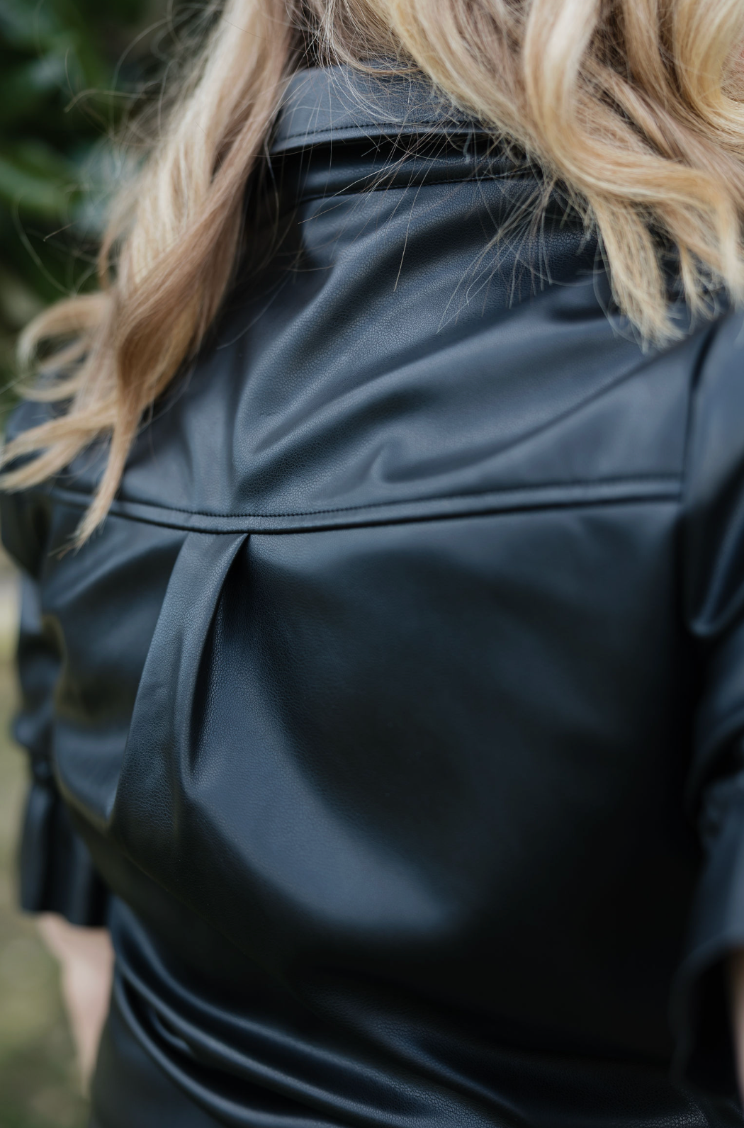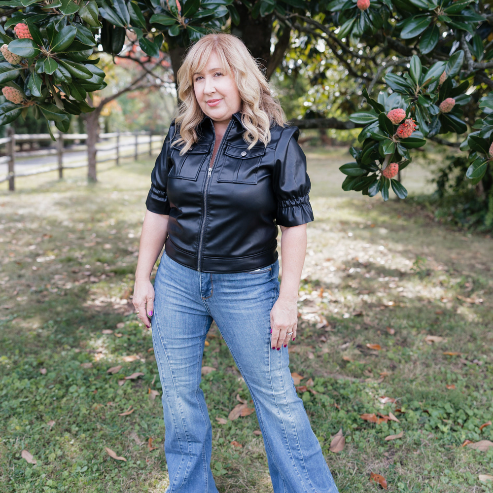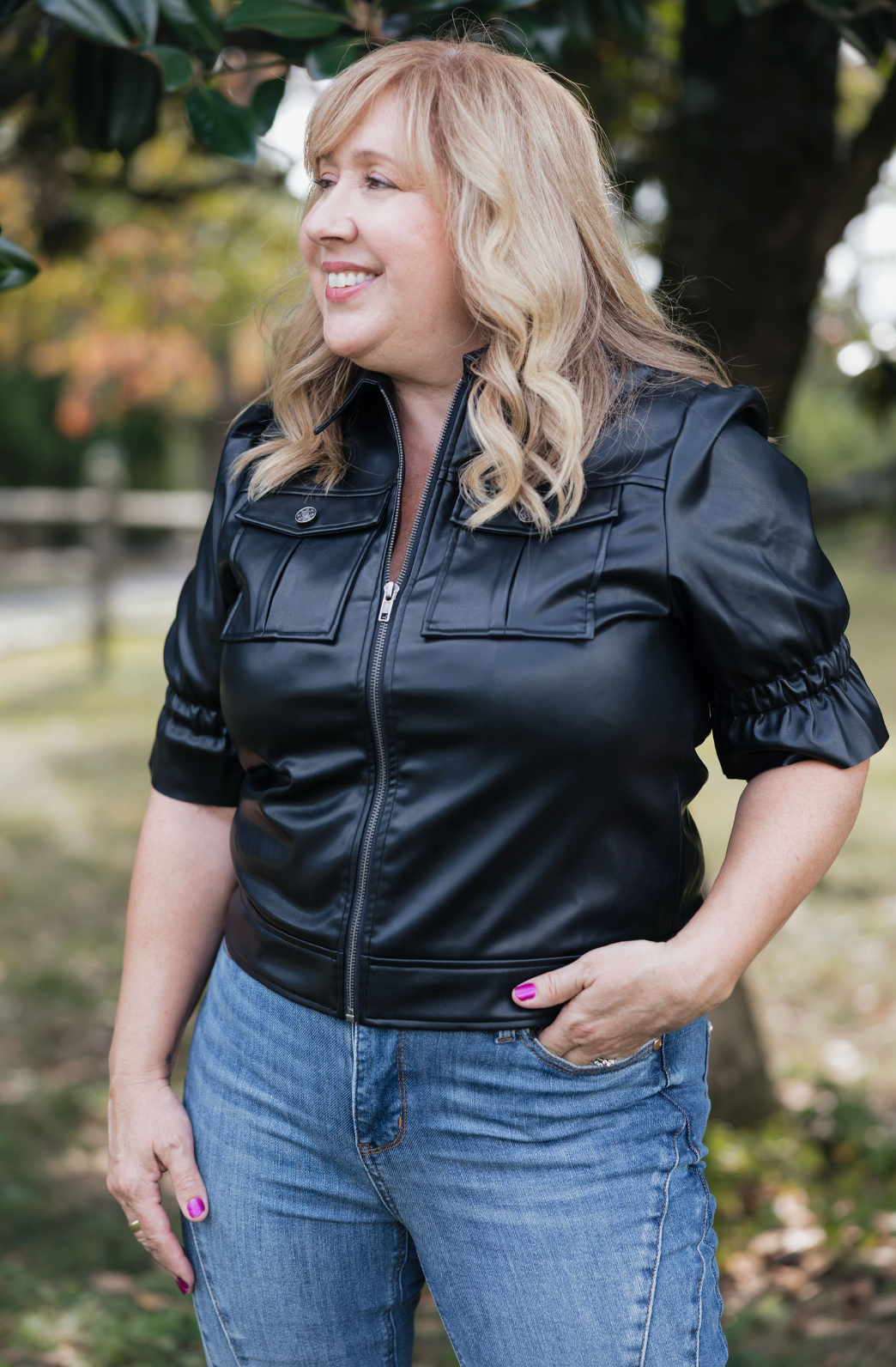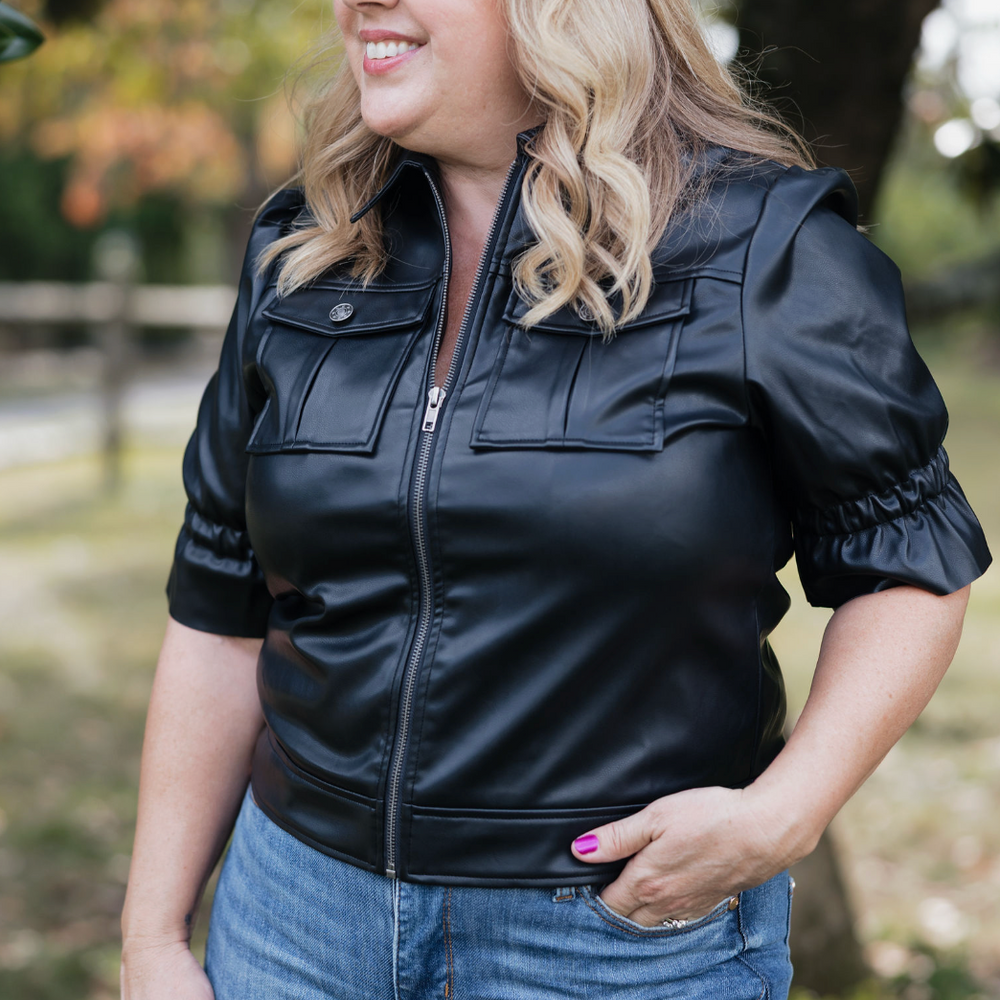Get ready to be chic and stylish with our Jennifer Jacket! This leather jacket features a button front pocket detail, making it both practical and fashionable plus adds a little edge to any outfit. Don't miss out on this must-have piece!