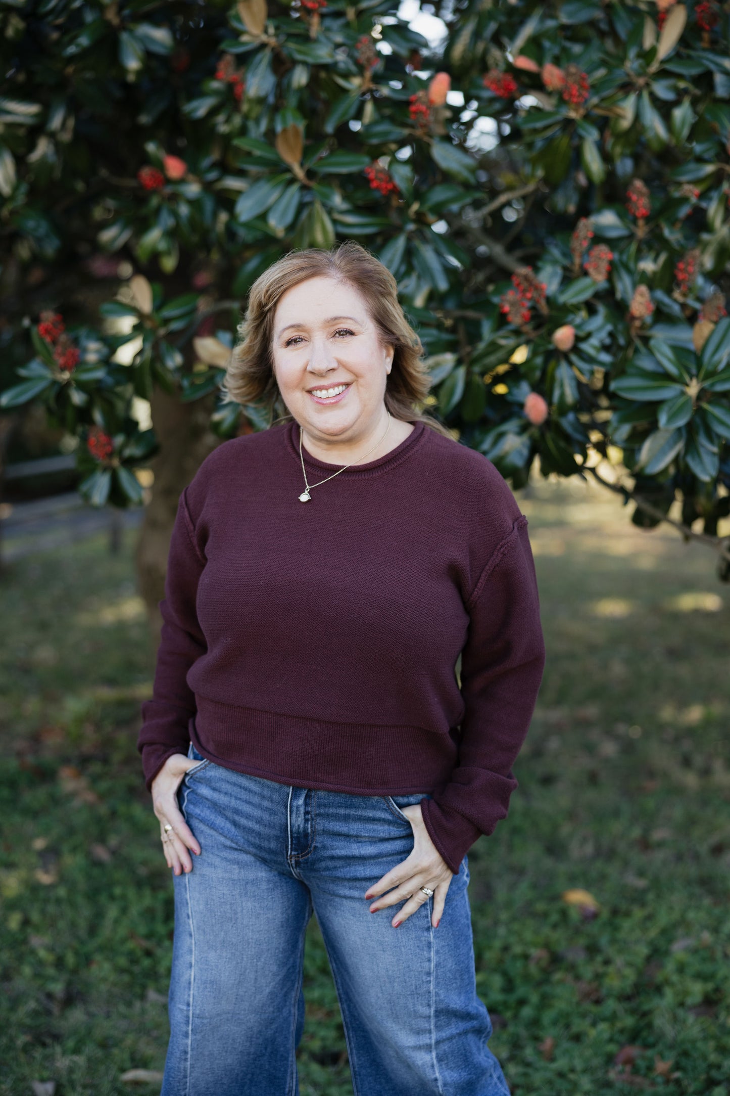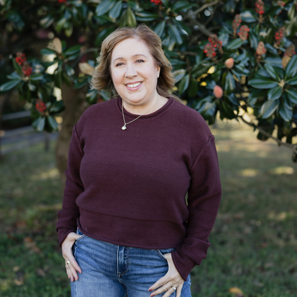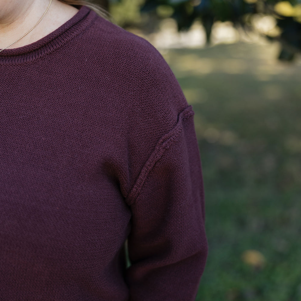 This playful sweater features a slightly cropped fit and charming rolled edge details on the long sleeves for a fun, stylish look.