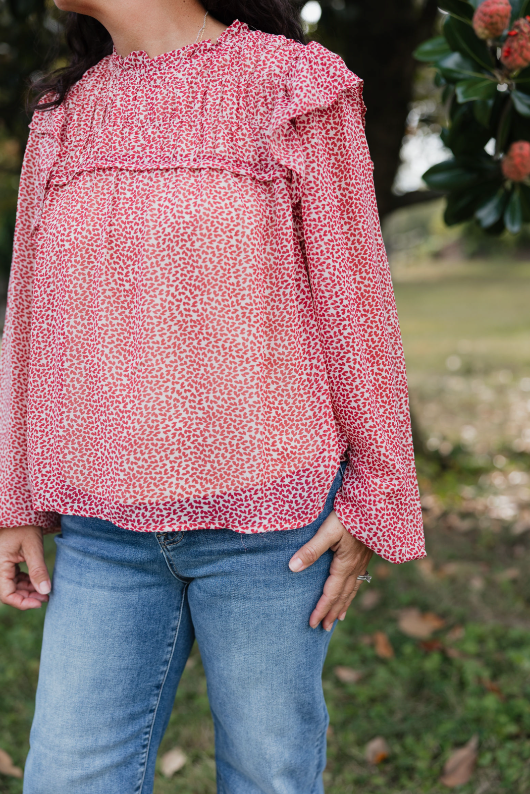 Cream Rose Ruffle Blouse