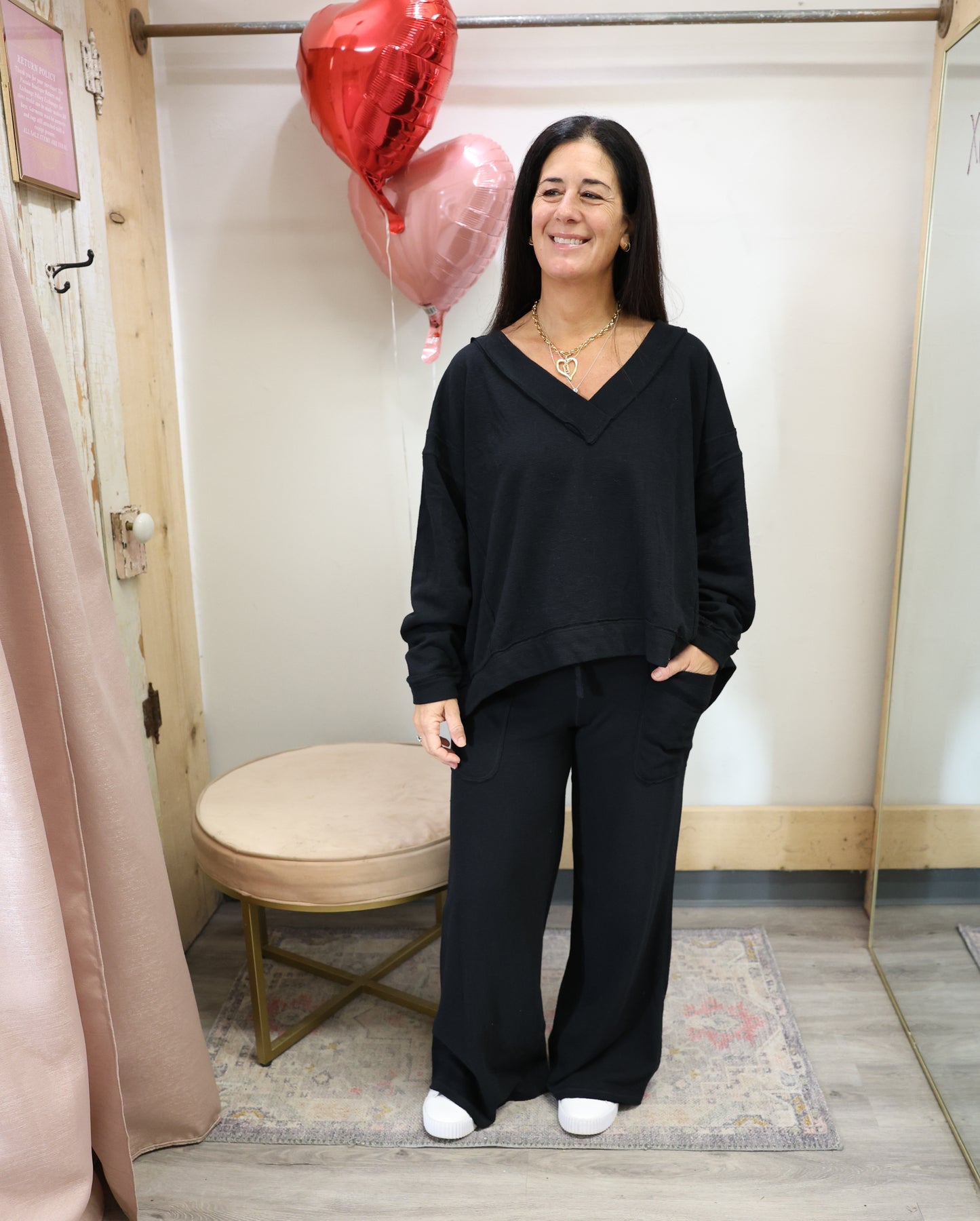 Presented in a high-rise, straight-leg silhouette with tailored pockets for a refined finish. Features an elasticated waistband with drawstring, oversized side pockets, and a raw hem that adds a relaxed, lived-in appeal