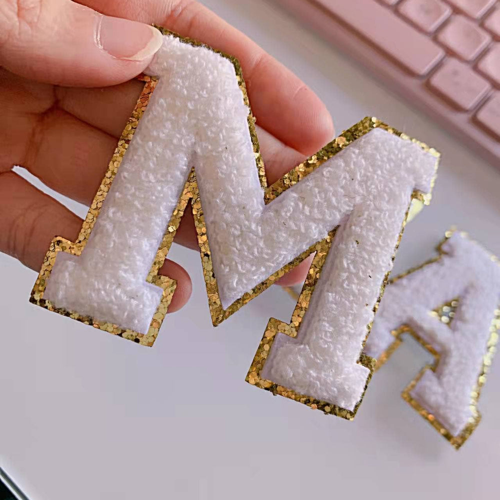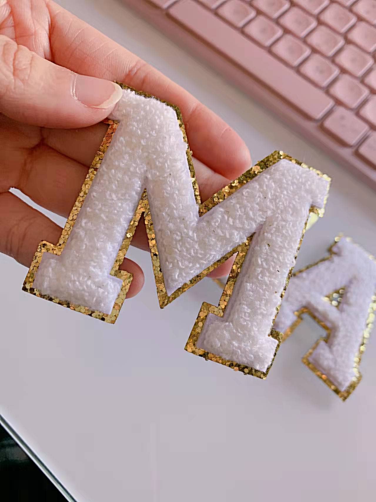 2.35 inch Iron on letters, White, Chenille Letters, varsity: B