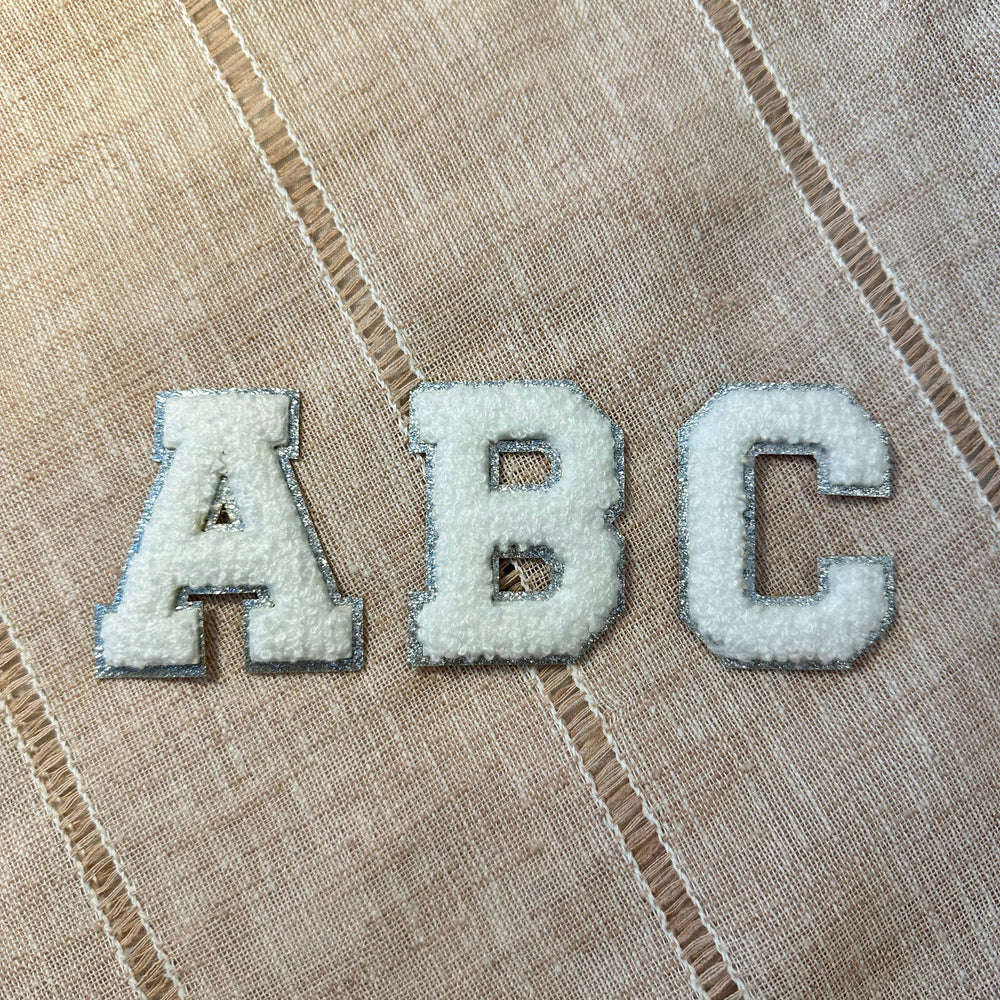 2.35 inch Iron on letters, white/ Silver , Chenille Letters: O