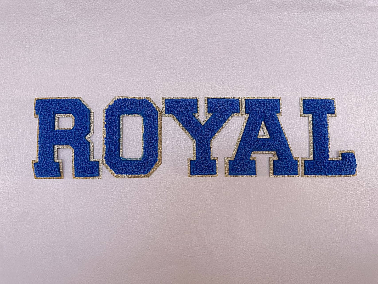 3 inch Iron on letters, Royal Blue(Gold), Chenille Letter: O