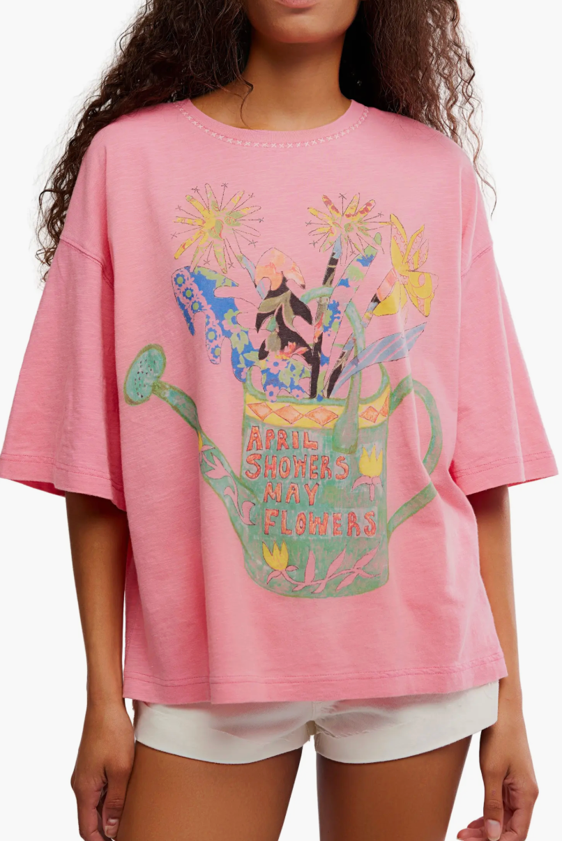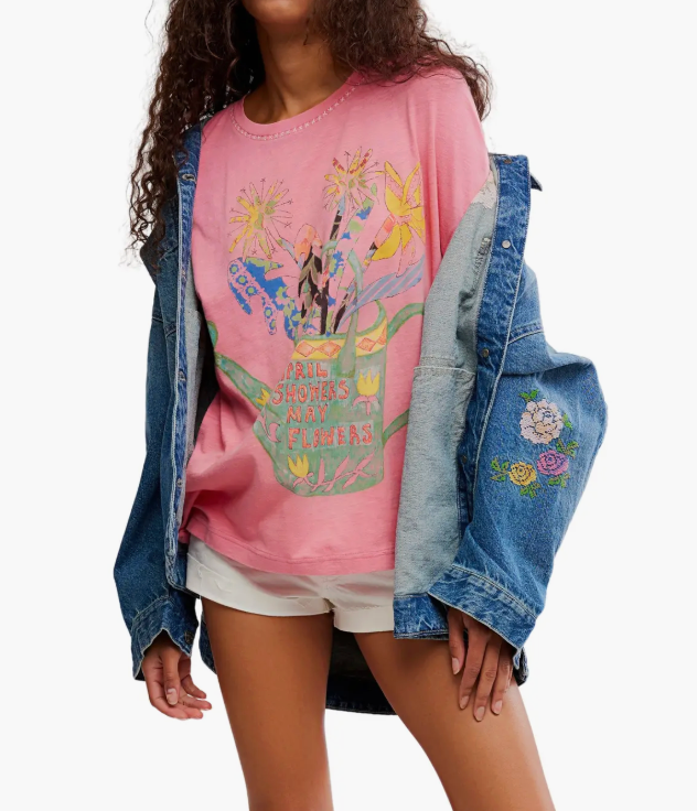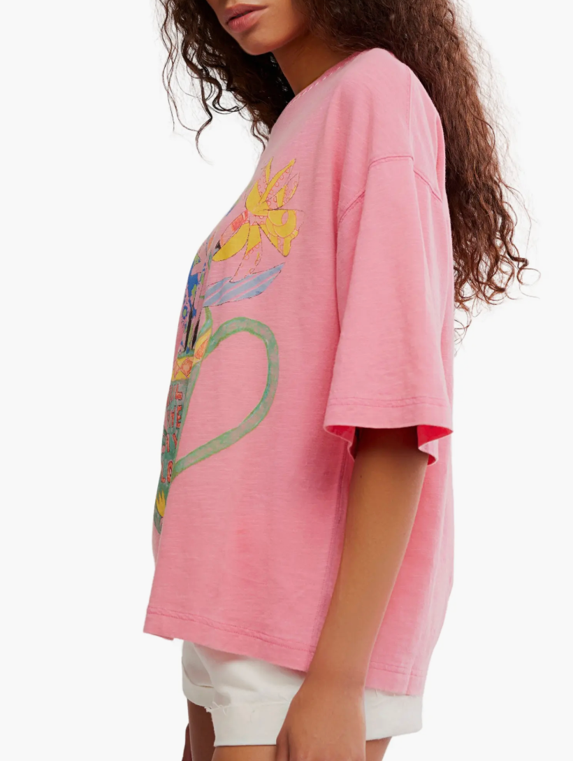 This breezy graphic tee brings effortless style to your everyday rotation. Soft cotton construction pairs with a relaxed, oversized fit that's perfect for laid-back days. The charming floral motif adds personality, while dropped shoulders and short sleeves keep things cool and casual.