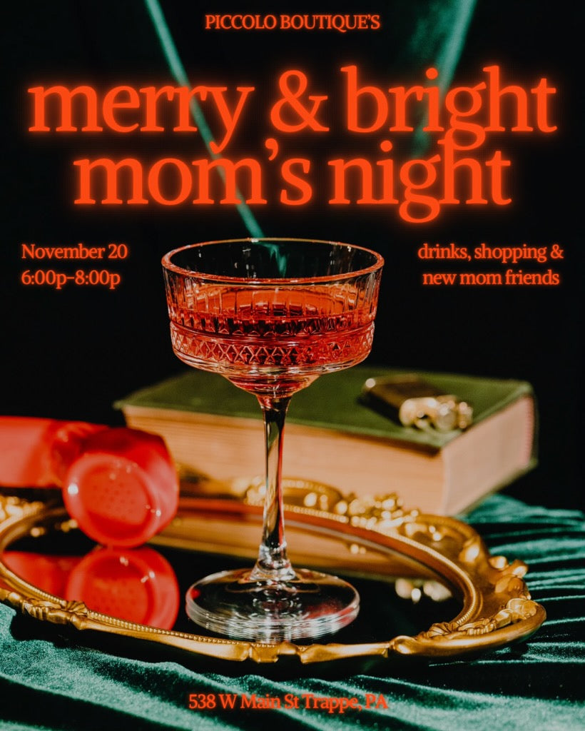 Join us on Thursday November 20th for Piccolo's first Mom Night out! Come and mingle with other Moms that are looking for a fun night of making new friends, shopping, snacks and of course wine or mocktails! It is REALLY hard to make new mom friends and it kind of feel like dating. Do I ask her if she wants to join us at the park? You're are the library and your kids are connecting but you just don't know what to say? We hope you find it easy to connect with some other girlfriends in a judge free environment.