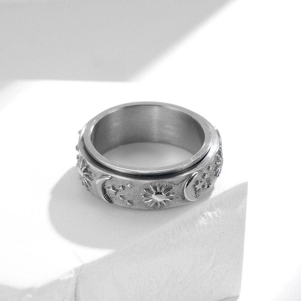 Sun Moon Star Fidget Spinner Band Ring in Stainless Steel: Gold/No Engrave / 8 US