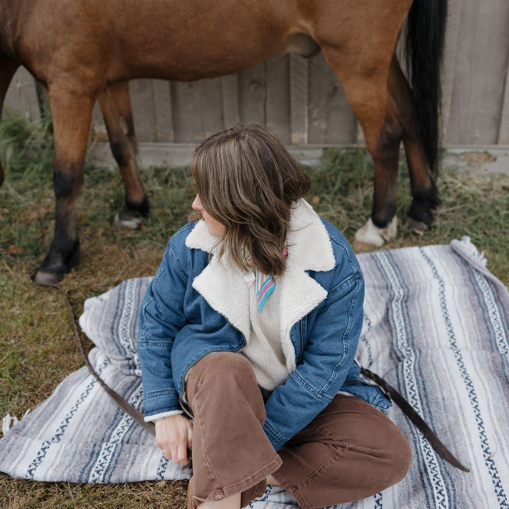 A fun spin on the classic moto jacket, blending faux fur with denim! Cozy and flexible, this jacket keeps you snug while letting you breeze through chilly days in style.